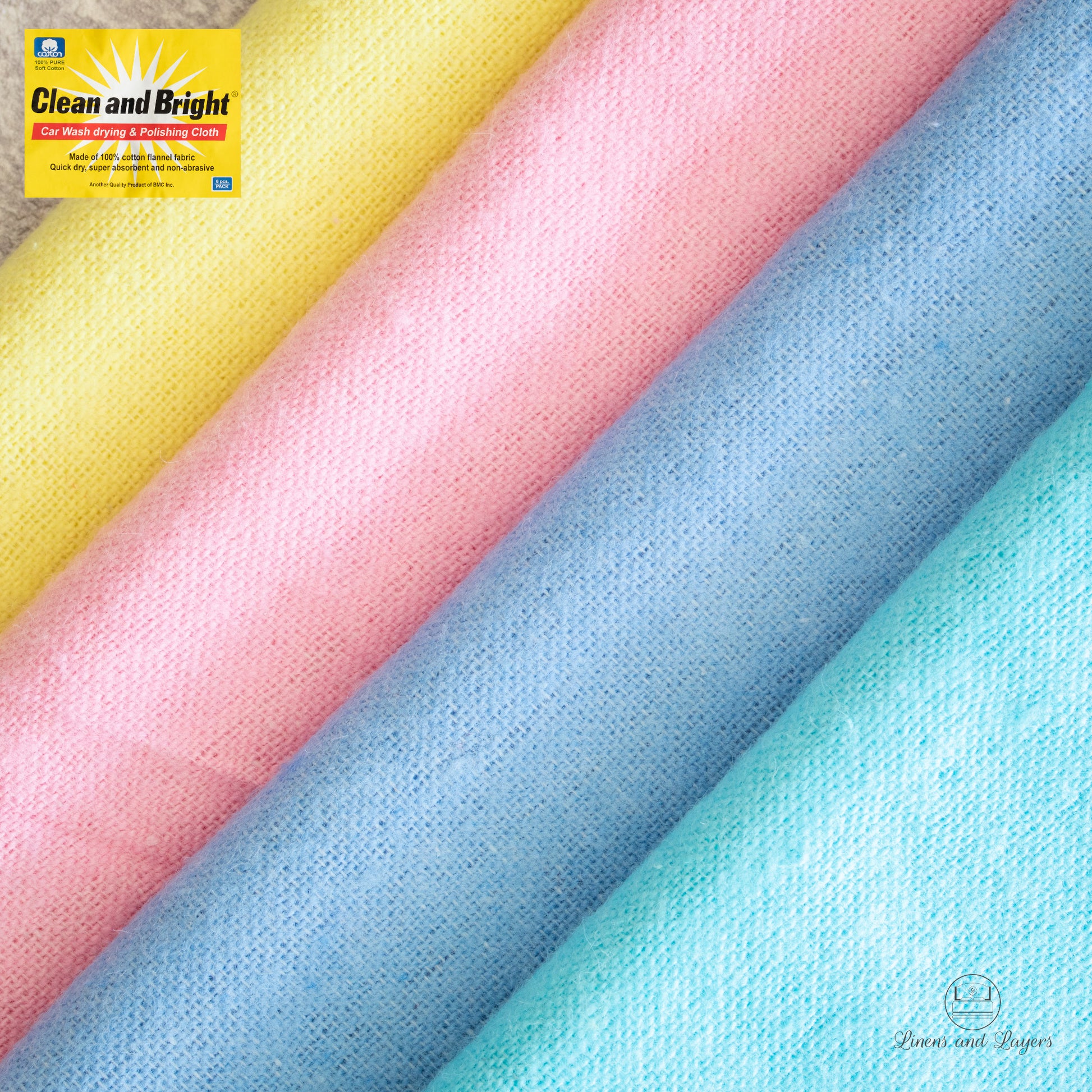 Clean and Bright Car Wash drying & Polishing Cloth is made of 100% cotton flannel fabric. It is fully hemmed, quick dry, super absorbent, and non-abrasive. It is great for automotive and household cleaning, dusting, and polishing.