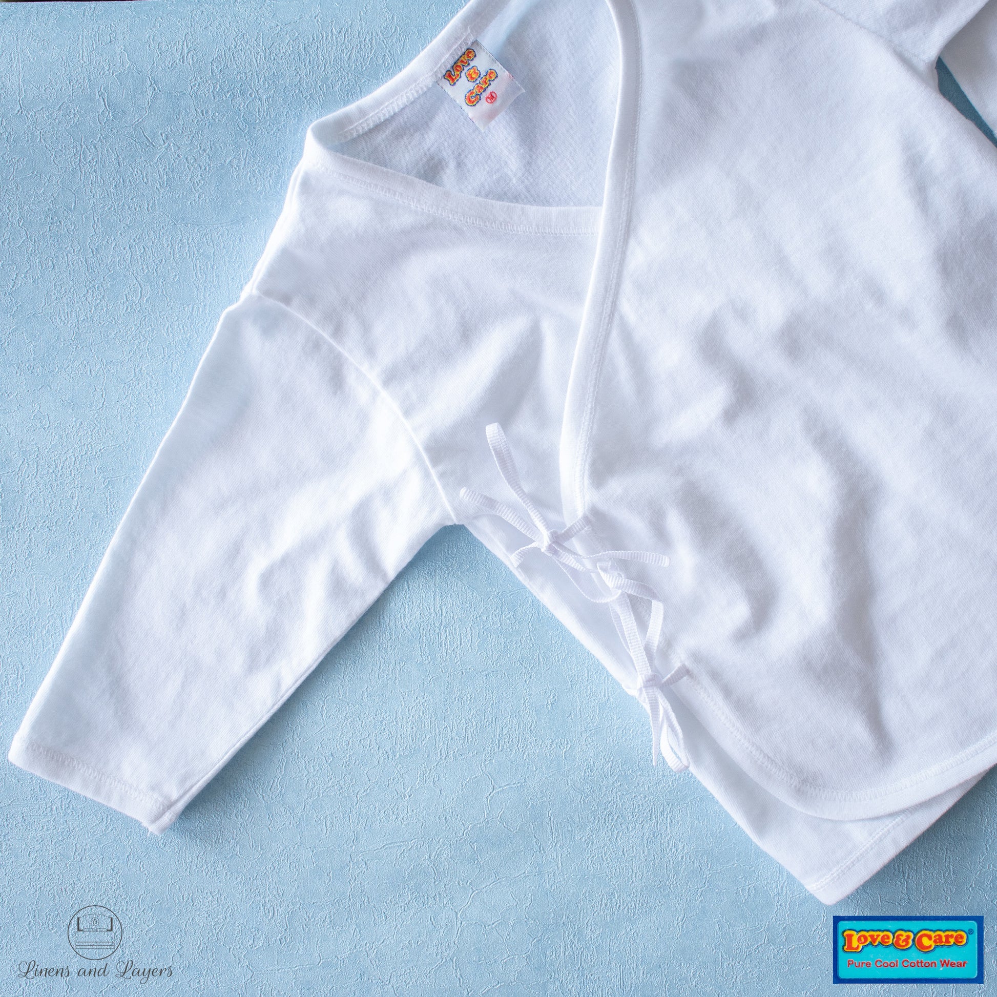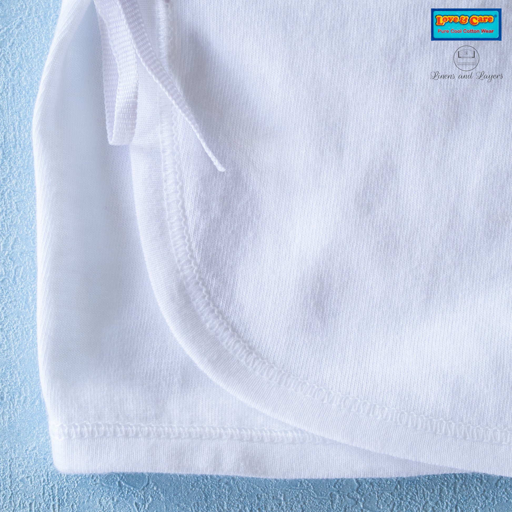 Love & Care - White Pure Cotton Newborn Baby Tie-side - Long Sleeves