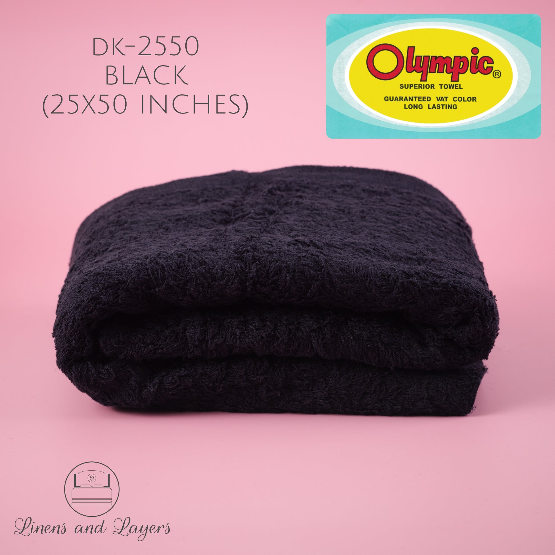 Olympic Black Bath Towel / Salon Towel / Spa Towel (470 GSM) - DK-2550 Terrycloth - 25x50 inches
